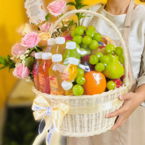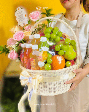 - Keranjang Anyaman Premium: Disajikan dalam keranjang anyaman putih yang kokoh dan menawan, dihiasi pita cantik, siap untuk langsung diberikan.