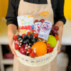 The Merry Red Basket: Hampers Buah Segar Nuansa Merah dengan Bunga Cantik