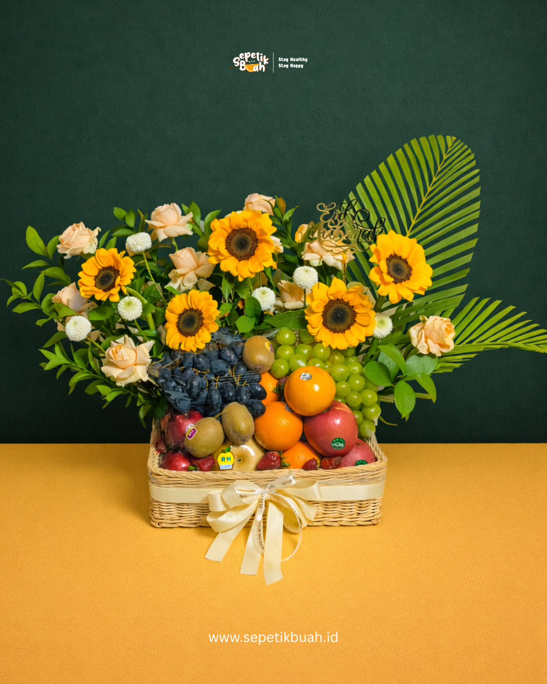 The Golden Tropical Eid Fresh Fruit & Flower Hampers | Parsel Buah Lebaran Bunga Matahari | Parcel Idul Fitri